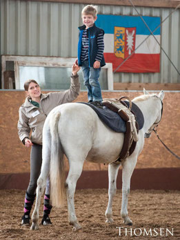 Voltigieren, Pferdefußball und weitere Reitspiele gewünscht. Nach der halben Zeit wird gewechselt, so dass alle in den gleichen Genuss kommen. Lisa voltigiert zuerst auf Spikey, ein braves großes