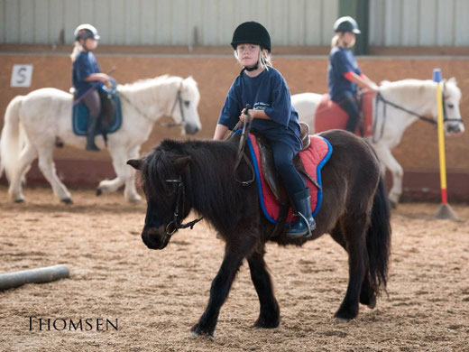 rübergeblinzelt, wie das so vor sich geht! Die Ponys laufen selber mit Spaß hinter ihrem Fußball her und die Reiter lernen nach den ersten wichtigen Erklärungen spielerisch, die Pferde hinter dem