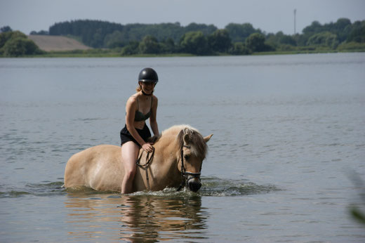 Je nach reiterlichem Stand und Wetter gestalten wir die Reitzeiten so abwechslungsreich wie möglich, z.B. mit Pferdefußball, Quadrille, Mounted Games, Ringreiten, Schwimmen mit den Pferden, ggf. Nachtritt, Halsringreiten, Übungen im Springgarten, Trailübungen und vieles mehr…